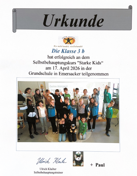 Am Freitag, den 17. April, nahmen die Klassen 3a und 3b im Rahmen des Projekts „Starke Kids“ an einem besonderen Training teil. Die Polizisten und Selbstbehauptungstrainer Klaus Kratzer und Ulrich Klaiber gestalteten gemeinsam mit den Kindern einen abwechslungsreichen und lehrreichen Vormittag.