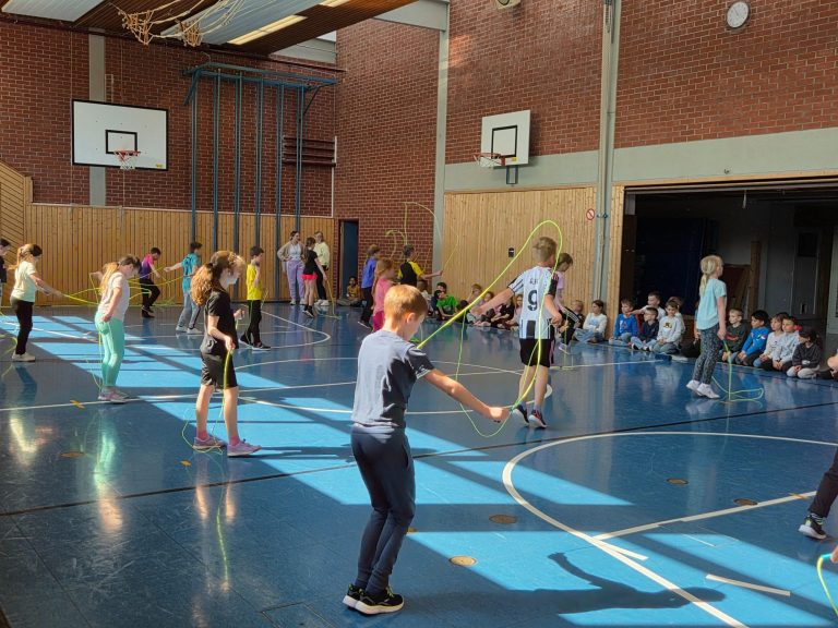 Unsere Klasse nahm mit großer Begeisterung am Projekt „Skipping Hearts“ der Deutschen Herzstiftung teil. Ziel dieses besonderen Sportprojekts ist es, Kinder zu mehr Bewegung zu motivieren und ihnen die vielfältigen Möglichkeiten des Seilspringens näherzubringen.