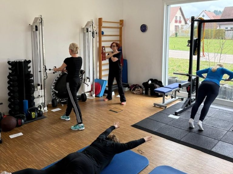 Nach einer theoretischen Einführung ging es dann an die Geräte, an denen verschiedene Übungen in einem Zirkel durchgeführt wurden. Sie alle dienen dem Aufbau der Muskelkraft, die neben täglicher Bewegung und Herz-Kreislauf-Einheiten in unseren Alltag eingebunden werden sollten.